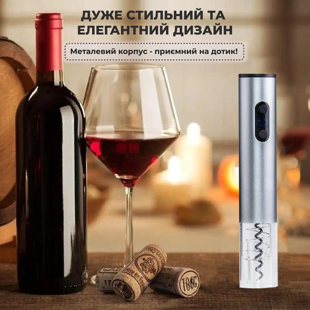 Допоможе зробити ваш вечір романтичним і незабутнім. Вам більше не доведеться возитися з пляшкою вина, штопор впорається з будь-яким корком лише за кілька секунд. Елегантний сучасний дизайн допоможе пристрою списатися в атмосферу будь-якої важливої події.